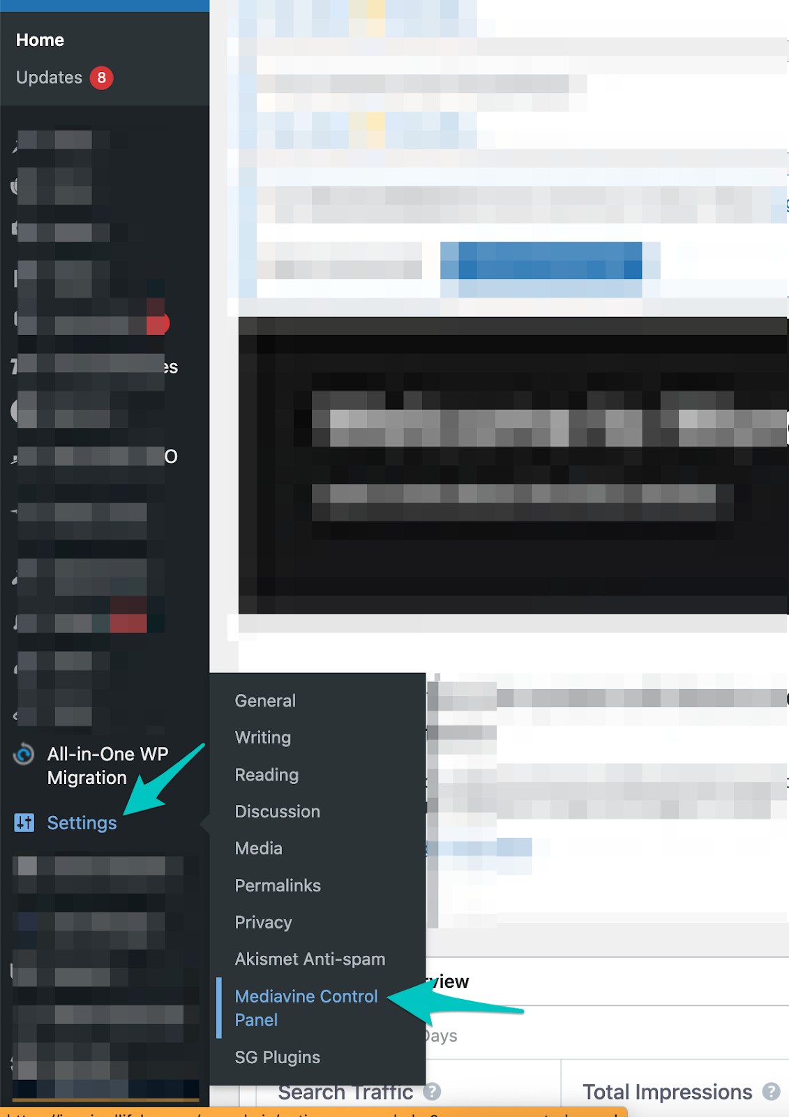 1) Login to your Wordpress Admin, and locate your Mediavine Control Panel settings via the Settings menu.