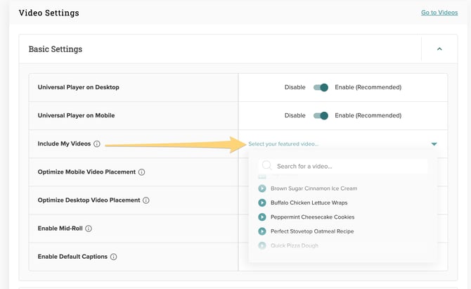 Select the video or playlist you'd like to feature. Be sure to save your settings.